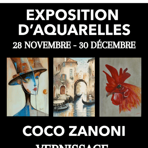 Exposition de l'aquarelliste Coco Zanoni à la médiathèque du 28 novembre au 30 décembre. Vernissage le 28 novembre à 18h.