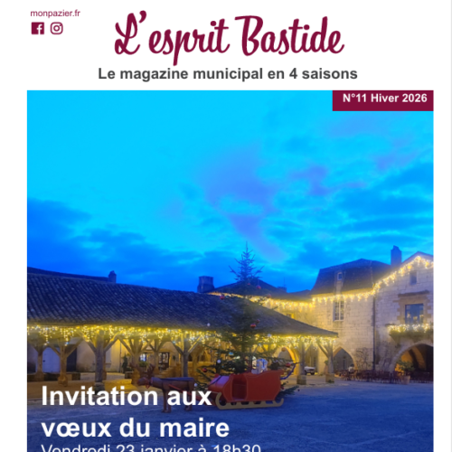 L’esprit Bastide, c’est le magazine municipal en 4 saisons de Monpazier. La municipalité est sensible à la mobilisation des ressources locales et à la préservation des ressources environnementales. Le papier est 100% local, fabriqué par les Papeteries de Condat au Lardin-Saint-Lazare en Dordogne (75km de Monpazier). L’imprimeur est 100% local, l’impression est réalisée par l’Imprimerie du Progrès à Pays de Belvès en Dordogne (16km de Monpazier).
